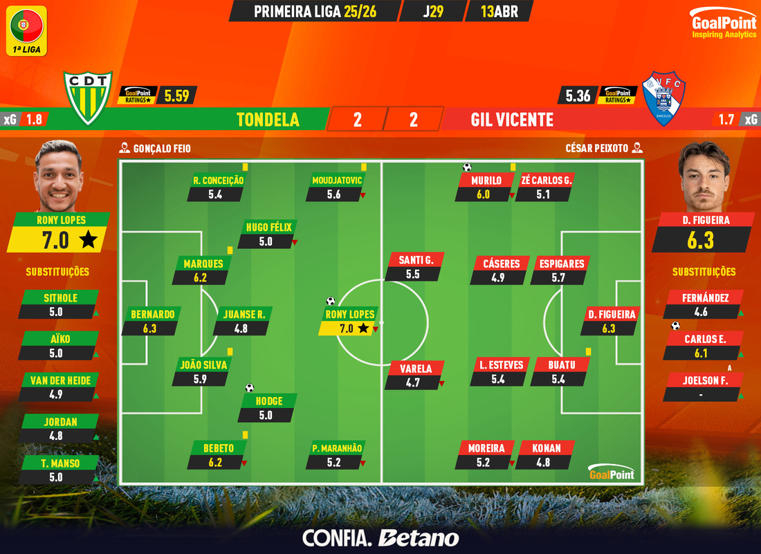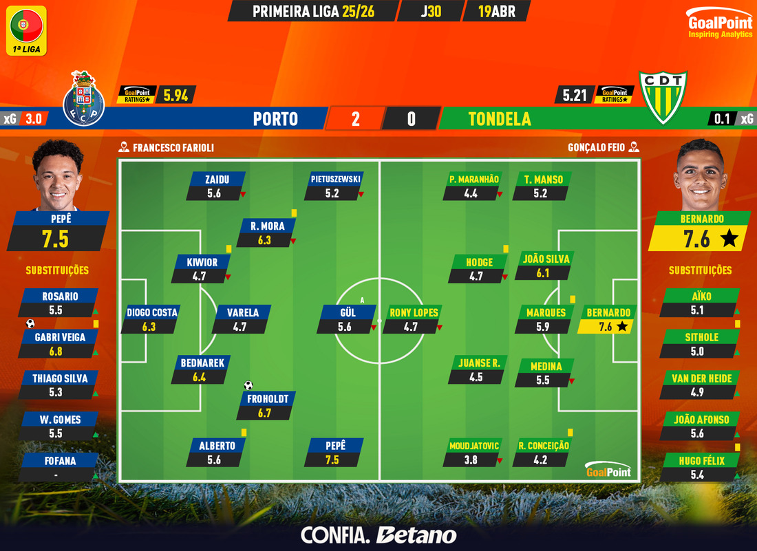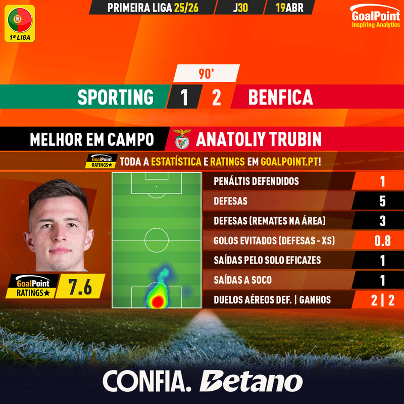 Equipa GoalPoint da 29ª Jornada | Jogo da Luz com os três melhores ratings ⭐️