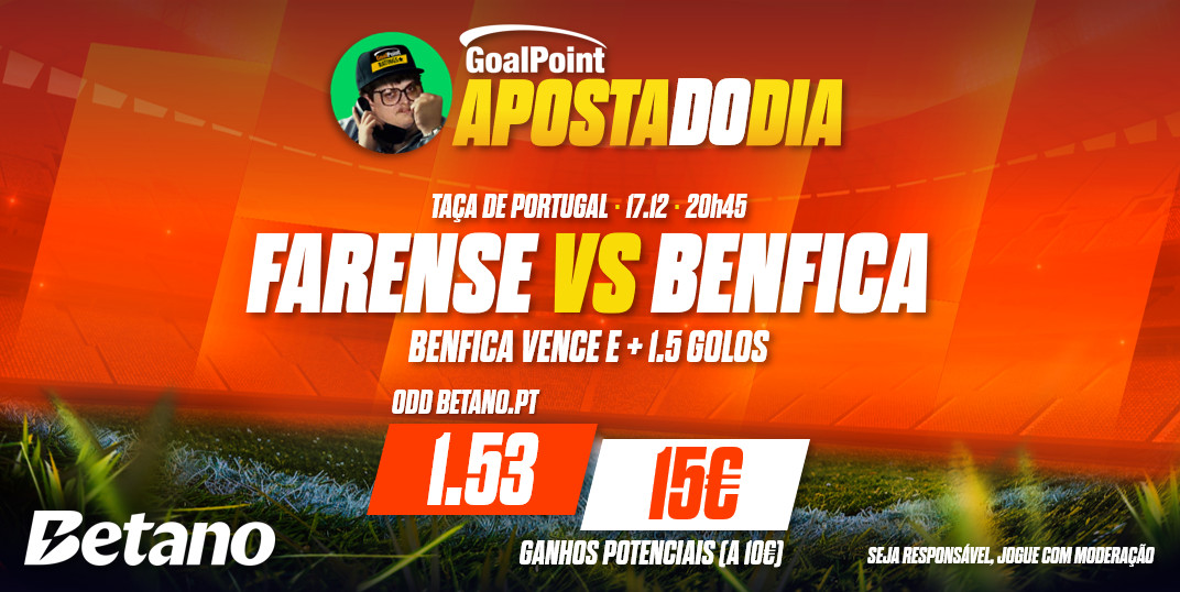 | 17.Dez | | | | Farense VS Benfica | Benfica vence e + 1,5 golos | 1.53 | ✅ |