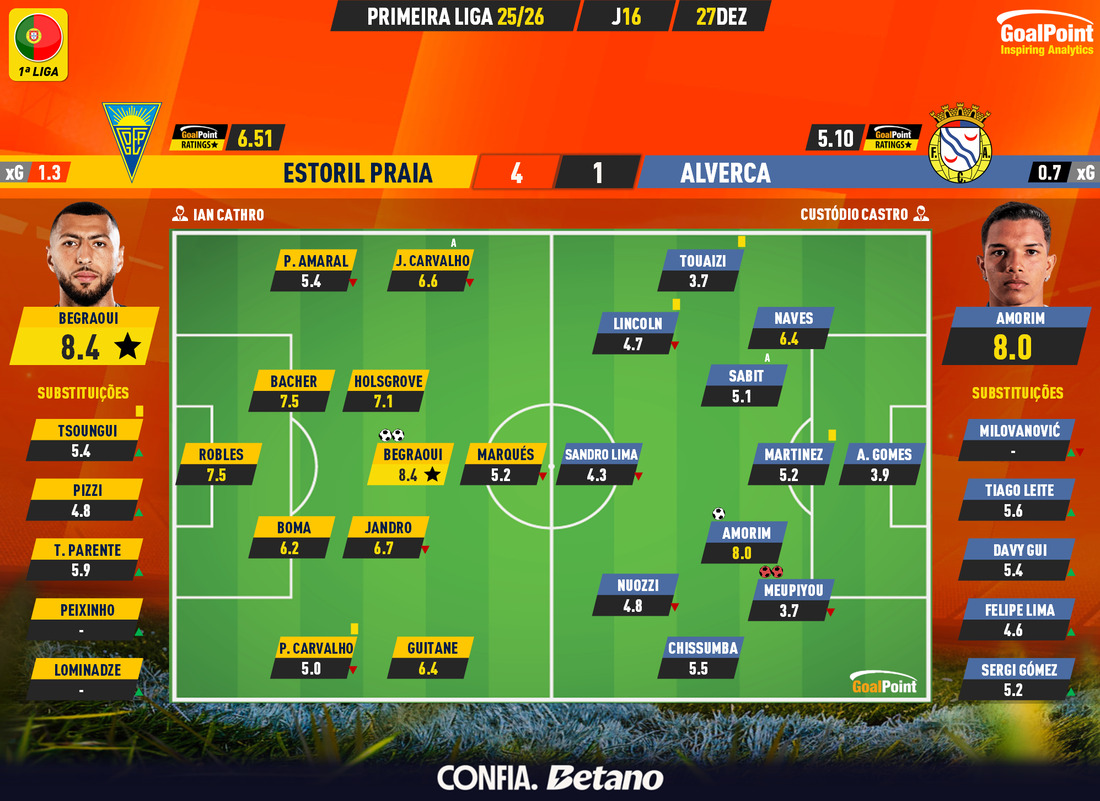 Aos 27 minutos já haviam sido marcados quatro golos, num arranque de jogo electrizante, no qual o Estrela conseguiu dar a volta a uma desvantagem e o Famalicão alcançar o empate antes do intervalo Contudo, os homens da Reboleira estavam inspirados e conseguiram um precioso triunfo apesar do baixo xG, num jogo em que os minhotos igualaram, pela segunda vez, o recorde de remates de cabeça na Liga (7). Jovane Cabral estreou-se a marcar no campeonato e logo com um bis, tendo estado muito bem no drible.