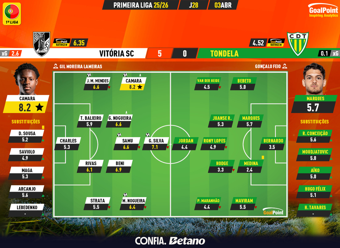 Após cinco jogos sem vencer, o Gil Vicente recebeu e bateu o AVS por 3-0, numa partida em que os visitantes bem tentaram, mas os homens de Barcelos foram bem mais perigosos e efectivos no ataque (xG). Gustavo Varela, com dois golos, foi o MVP.