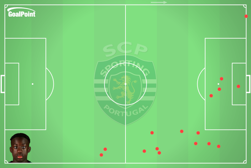 Mas, para lá dos golos, o que fica da inesquecível estreia de Salvador Blopa? O que nos diz o “radar” do Antunes, com dados e mapas, acerca do que mostrou o miúdo com apenas 18 anos feitos em Junho, em Alvalade? É para isto mesmo que os dados servem e, quando bem tratados, não bastam totais atirados ao calhas, há que contextualizar e mapear o que encontramos, para realmente fazermos um trabalho competente e não apenas mais um exercício de “stats fast food”. Aqui ficam os nossos destaques, um caso fácil ou nõ tivesse o jovem Salvador começado a dar sinais de que vinha aí “coisa boa” antes mesmo de se estrear nos golos.