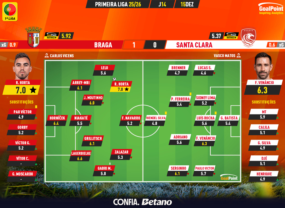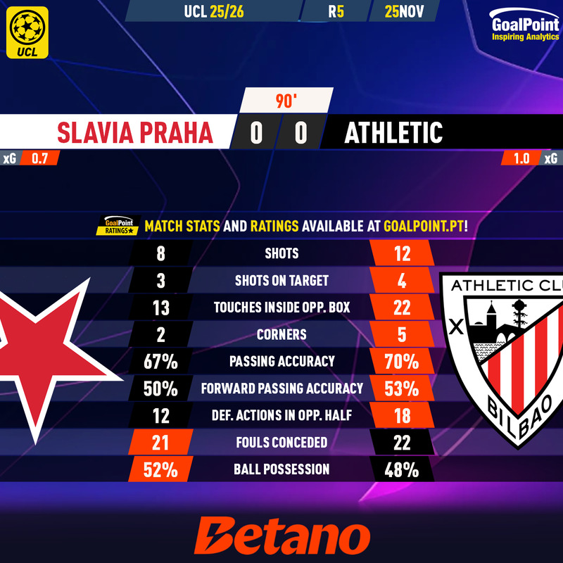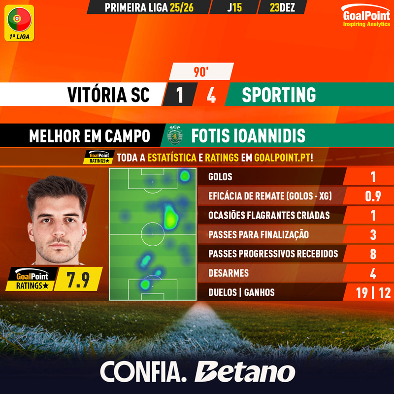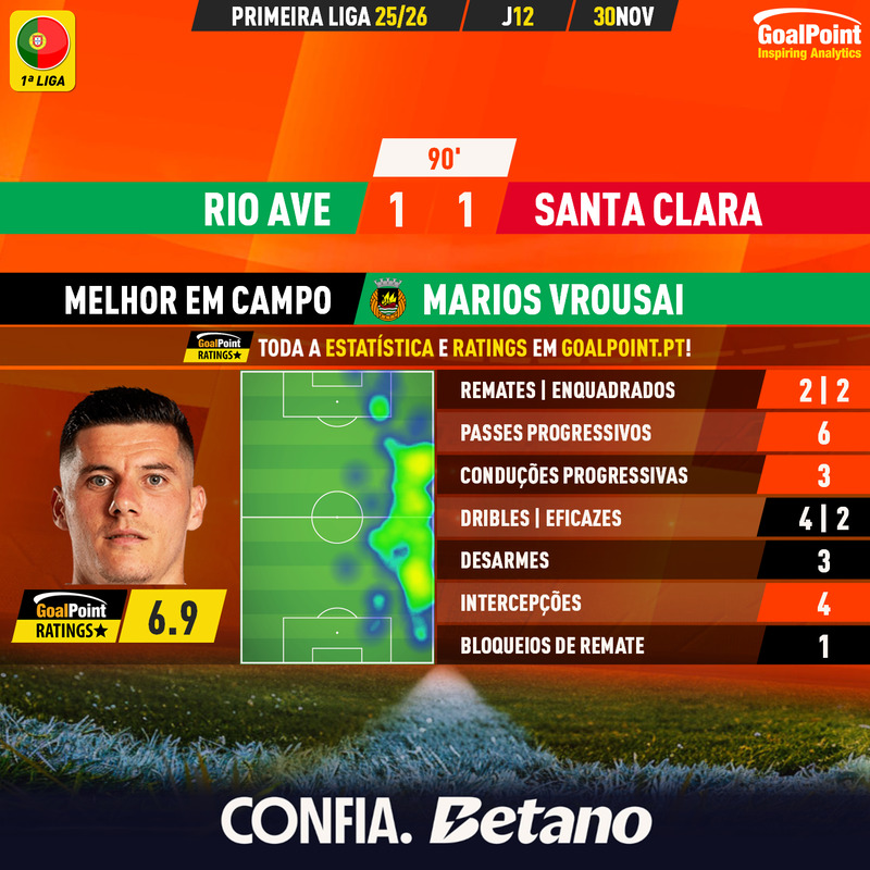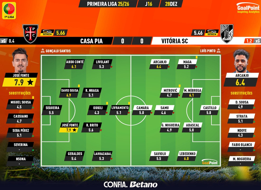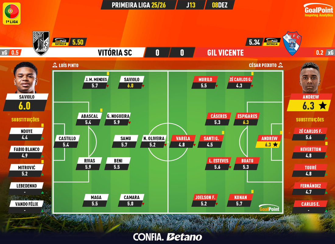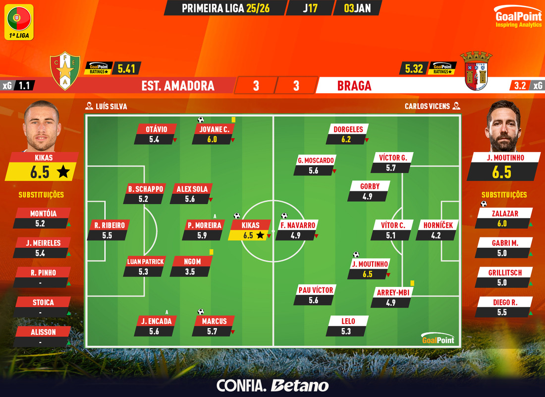 Nesta página podes consultar todos os jogos da época 2025/26, nas diversas competições acompanhadas em permanência pela GoalPoint. Em cada jogo encontrarás links para as estatísticas, ratings, MVP, mapas de passes e de Expected Goals logo… o melhor é guardar nos favoritos. Estás interessado(a) em aceder aos GoalPoint Ratings de modo regular e automatizado, para fins profissionais? Então confere esta informação e contacta-nos, obrigado!