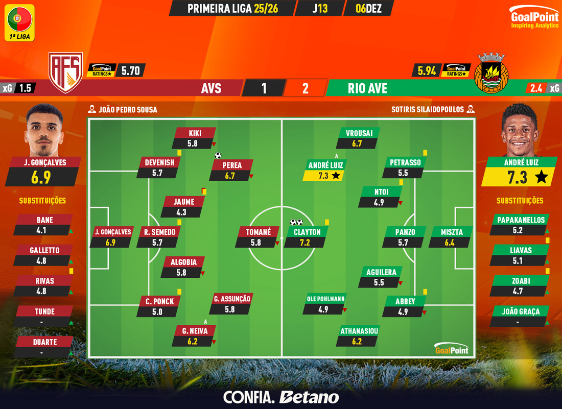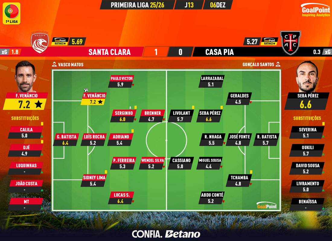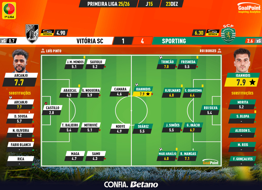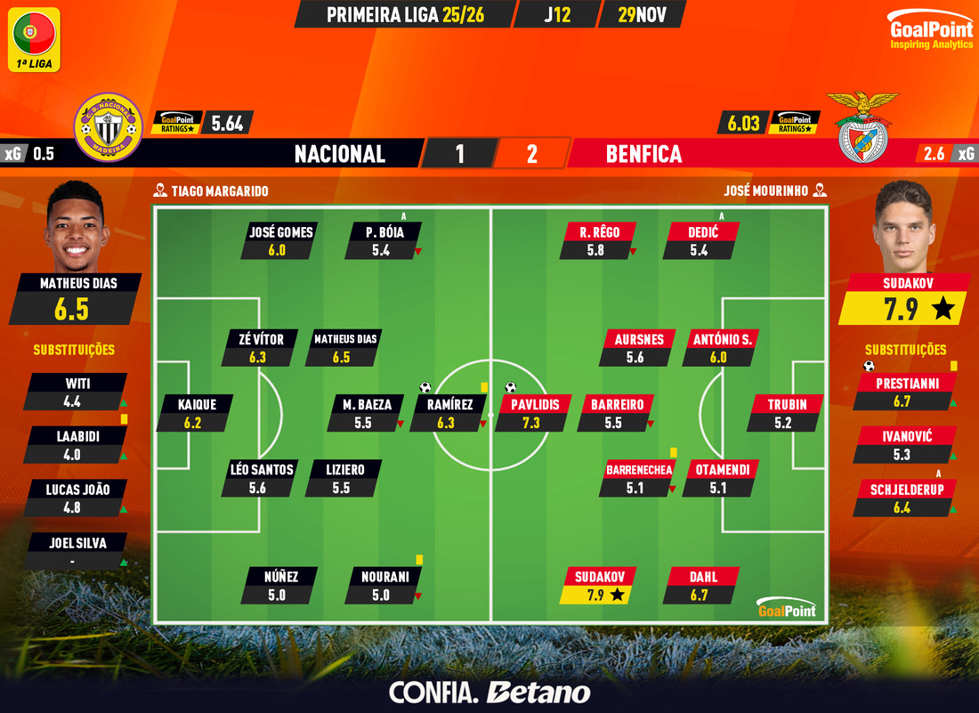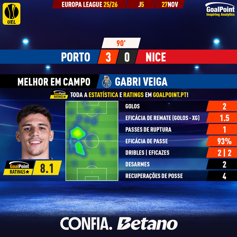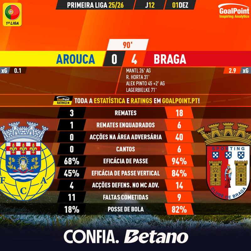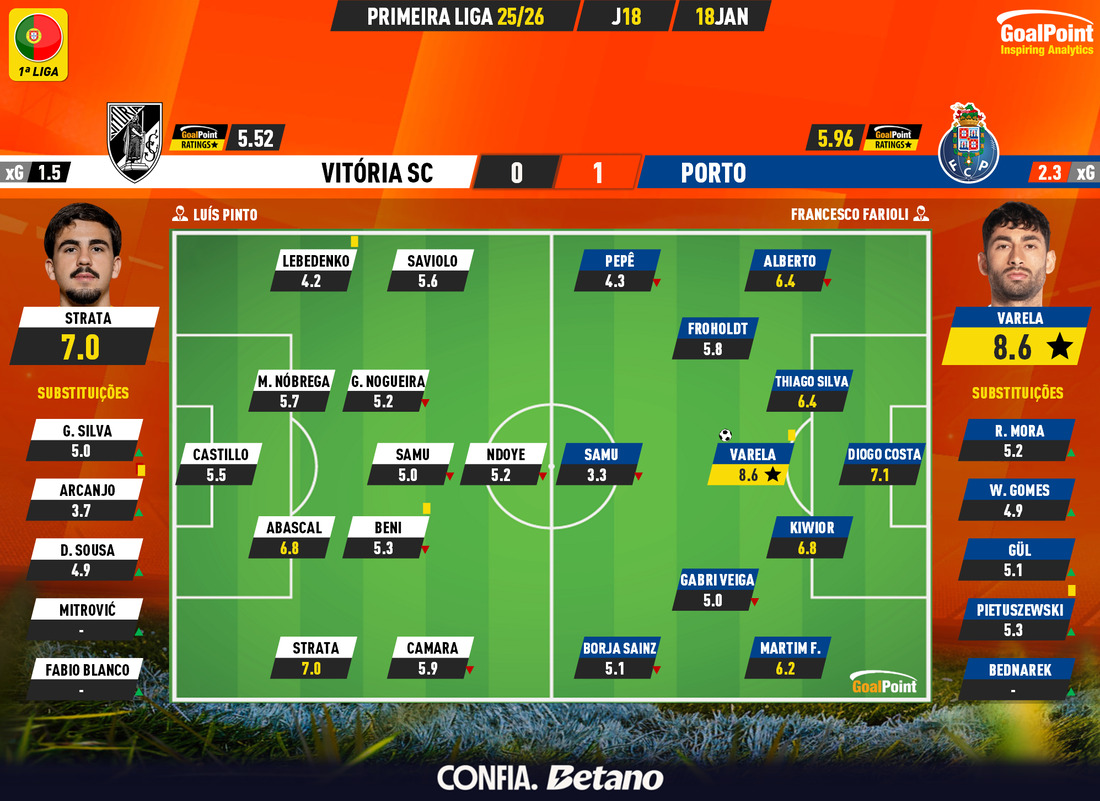 Nesta página podes consultar todos os jogos da época 2025/26, nas diversas competições acompanhadas em permanência pela GoalPoint. Em cada jogo encontrarás links para as estatísticas, ratings, MVP, mapas de passes e de Expected Goals logo… o melhor é guardar nos favoritos. Estás interessado(a) em aceder aos GoalPoint Ratings de modo regular e automatizado, para fins profissionais? Então confere esta informação e contacta-nos, obrigado!