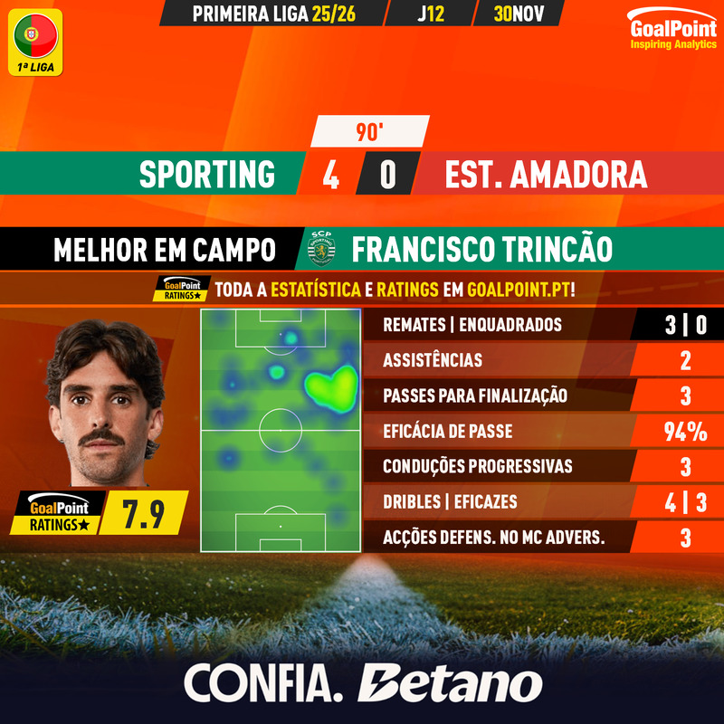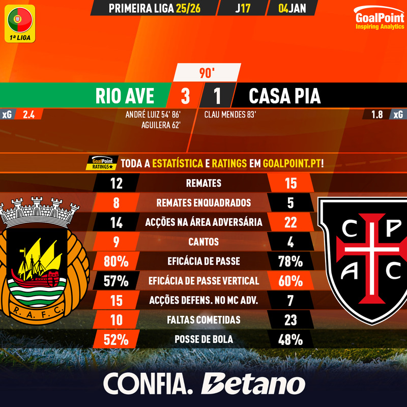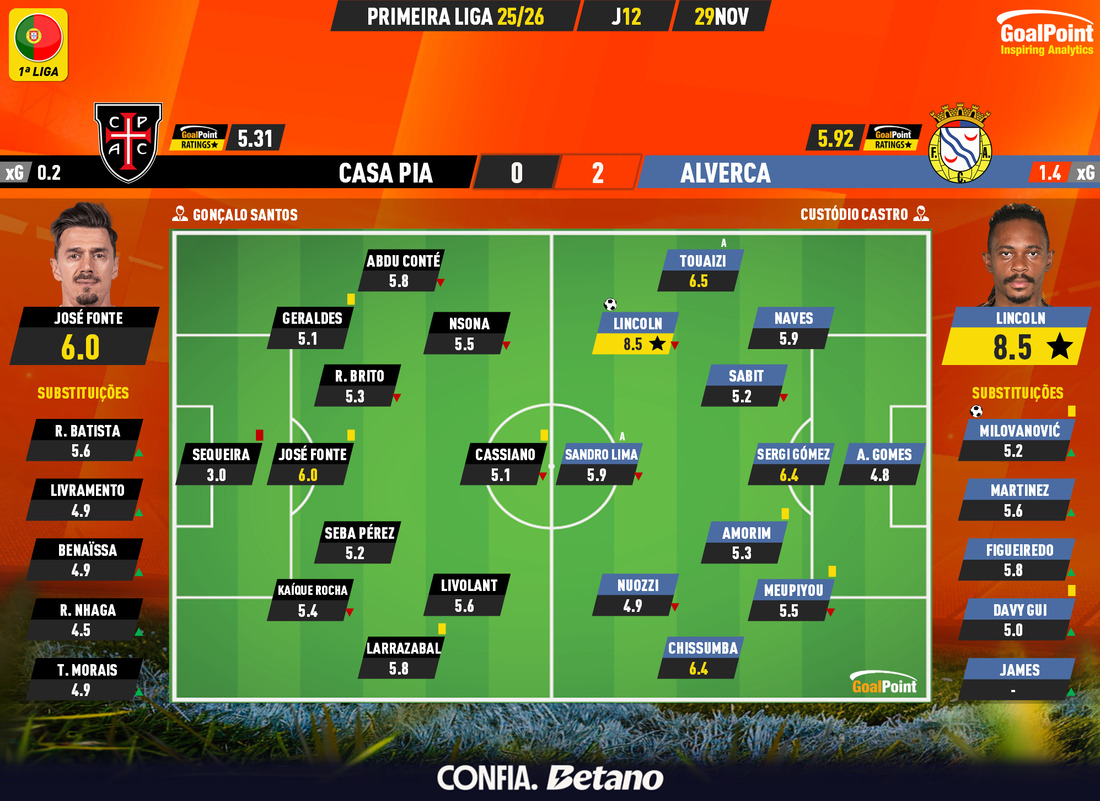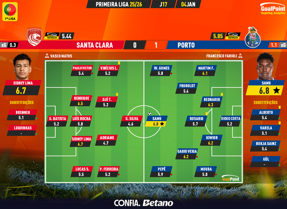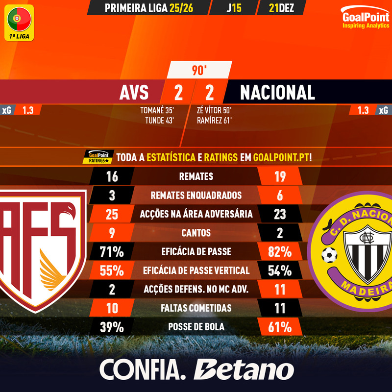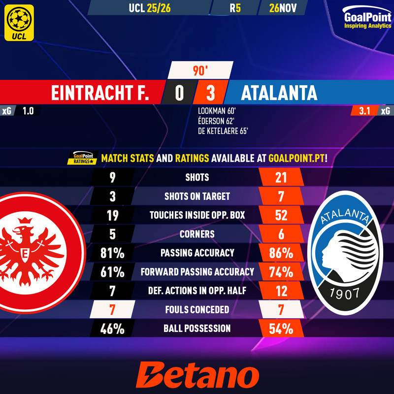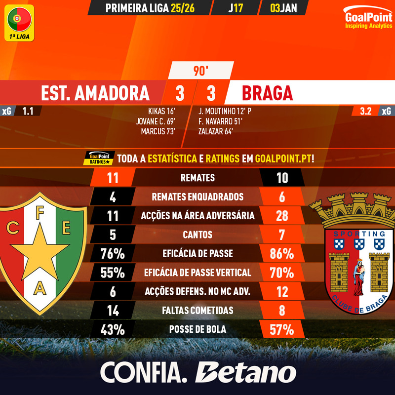 Nesta página podes consultar todos os jogos da época 2025/26, nas diversas competições acompanhadas em permanência pela GoalPoint. Em cada jogo encontrarás links para as estatísticas, ratings, MVP, mapas de passes e de Expected Goals logo… o melhor é guardar nos favoritos. Estás interessado(a) em aceder aos GoalPoint Ratings de modo regular e automatizado, para fins profissionais? Então confere esta informação e contacta-nos, obrigado!