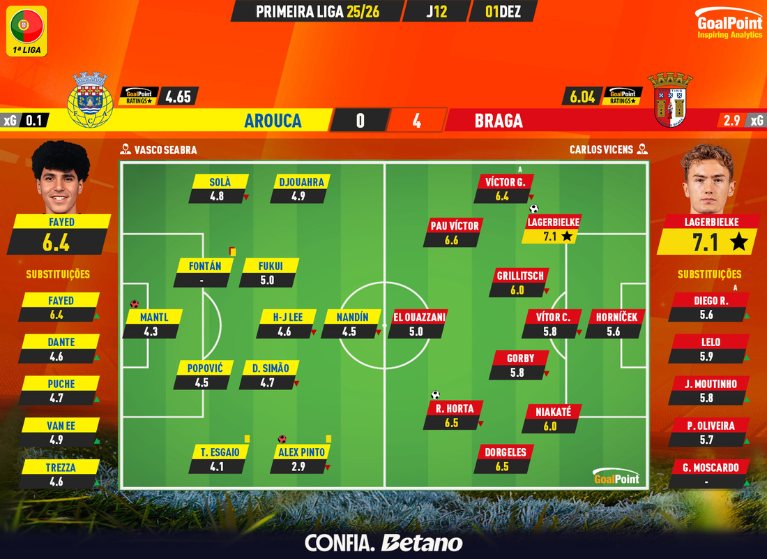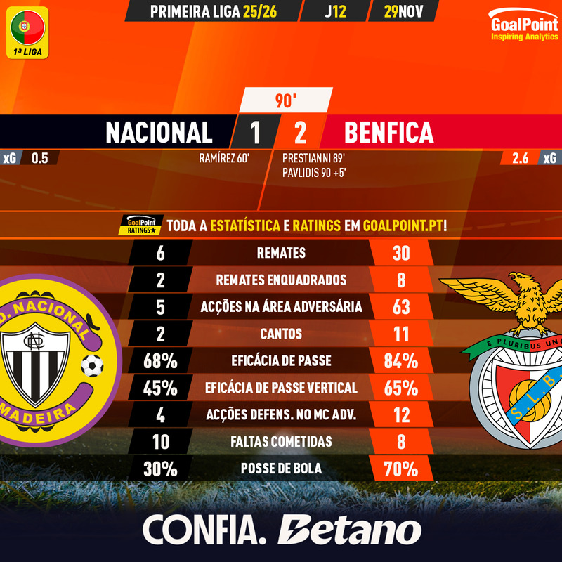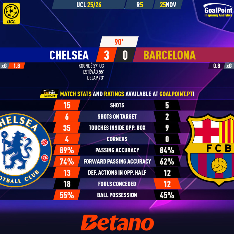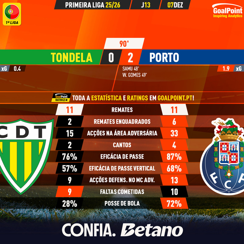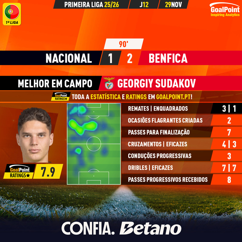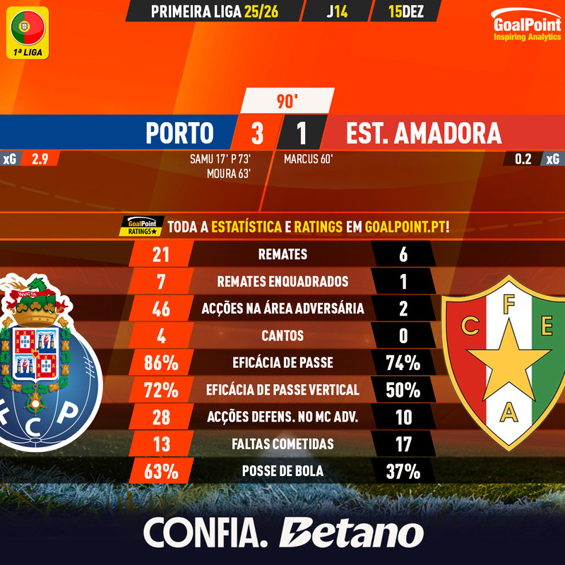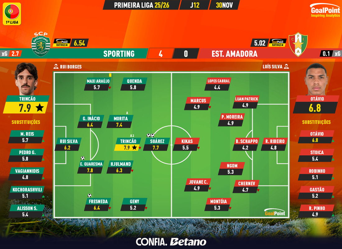 Nesta página podes consultar todos os jogos da época 2025/26, nas diversas competições acompanhadas em permanência pela GoalPoint. Em cada jogo encontrarás links para as estatísticas, ratings, MVP, mapas de passes e de Expected Goals logo… o melhor é guardar nos favoritos. Estás interessado(a) em aceder aos GoalPoint Ratings de modo regular e automatizado, para fins profissionais? Então confere esta informação e contacta-nos, obrigado!