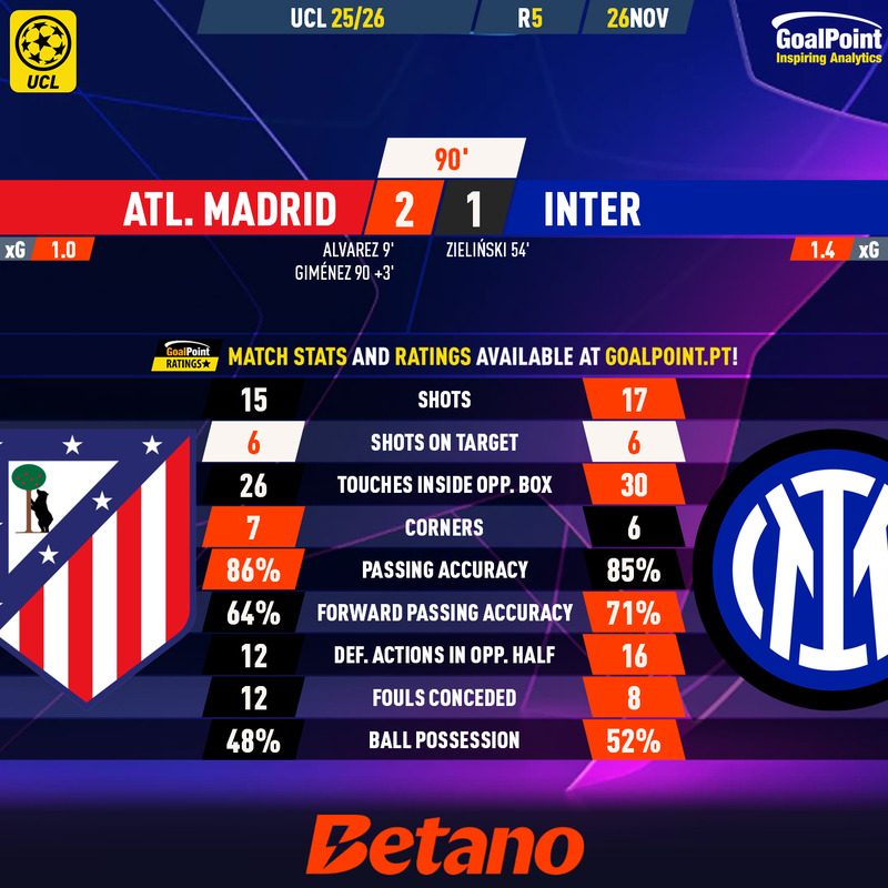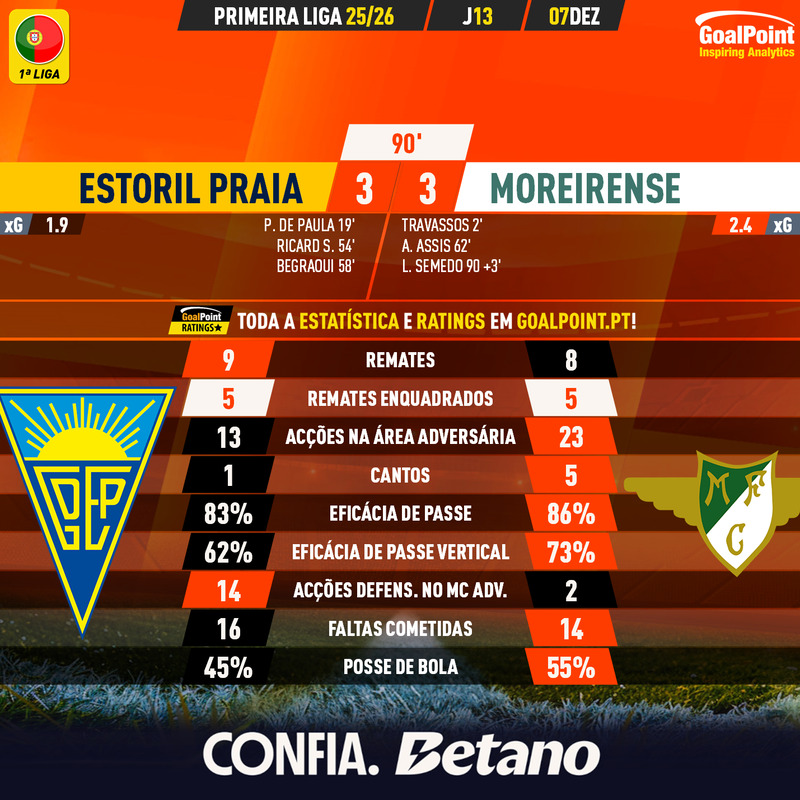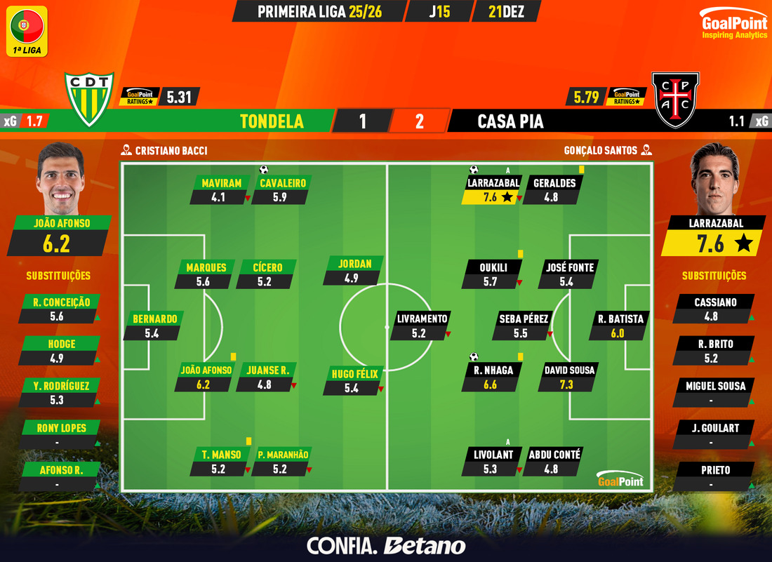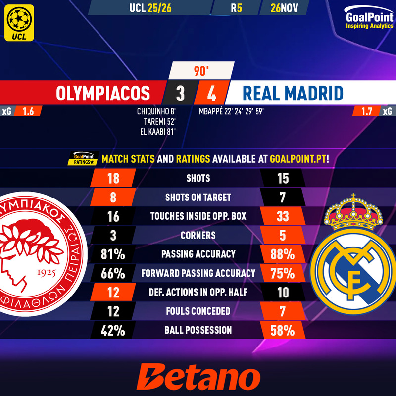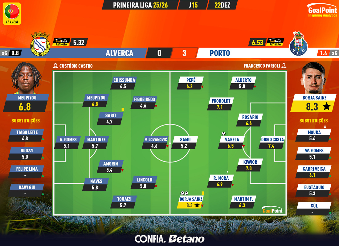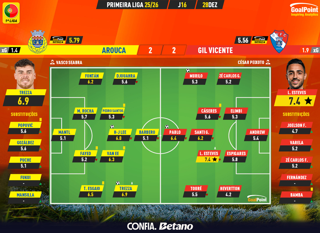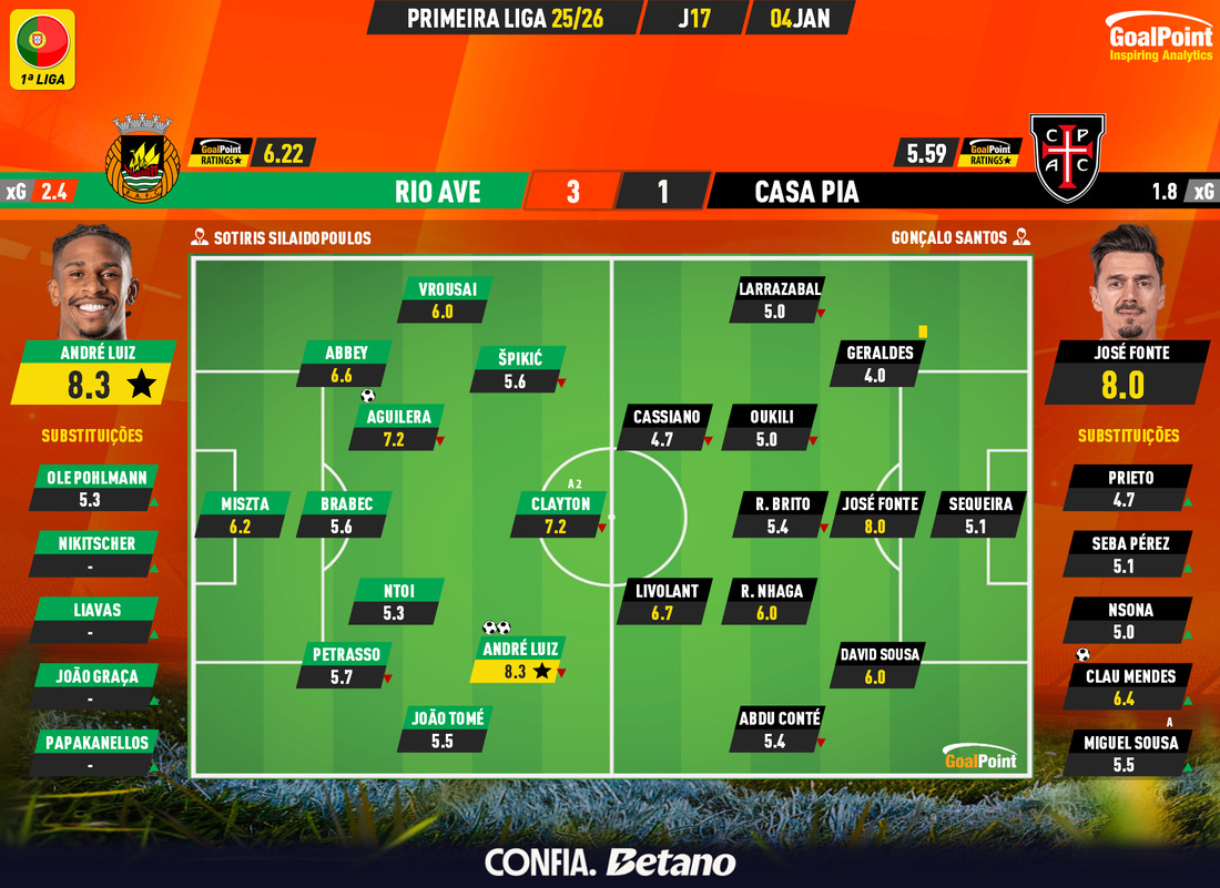 Nesta página podes consultar todos os jogos da época 2025/26, nas diversas competições acompanhadas em permanência pela GoalPoint. Em cada jogo encontrarás links para as estatísticas, ratings, MVP, mapas de passes e de Expected Goals logo… o melhor é guardar nos favoritos. Estás interessado(a) em aceder aos GoalPoint Ratings de modo regular e automatizado, para fins profissionais? Então confere esta informação e contacta-nos, obrigado!
