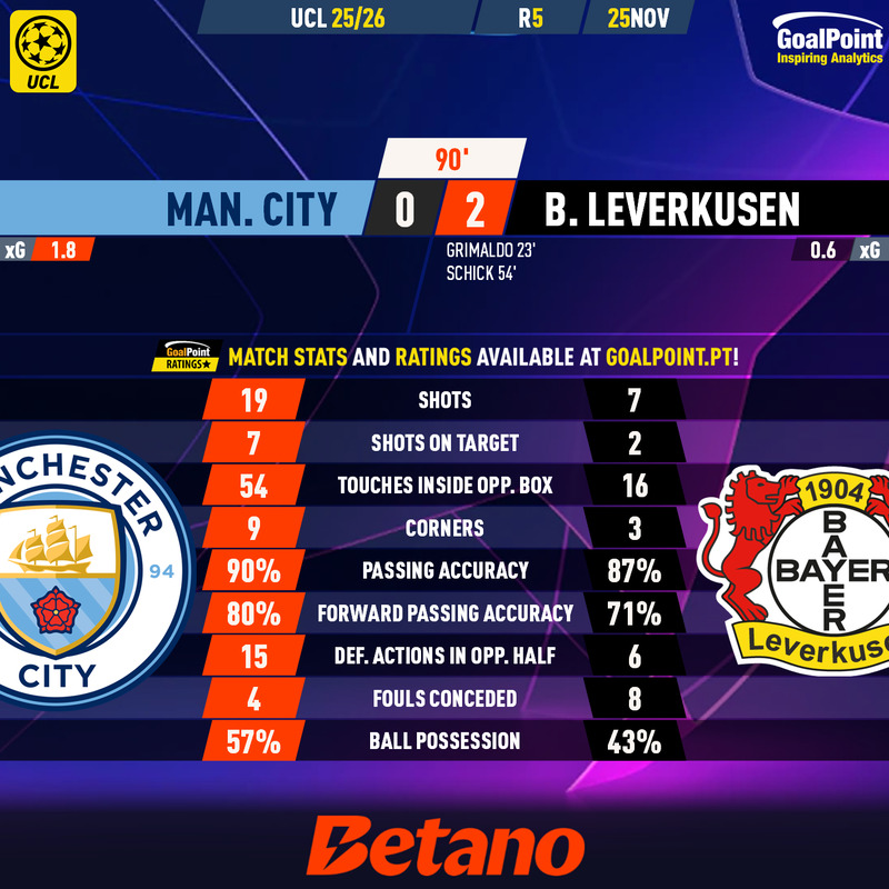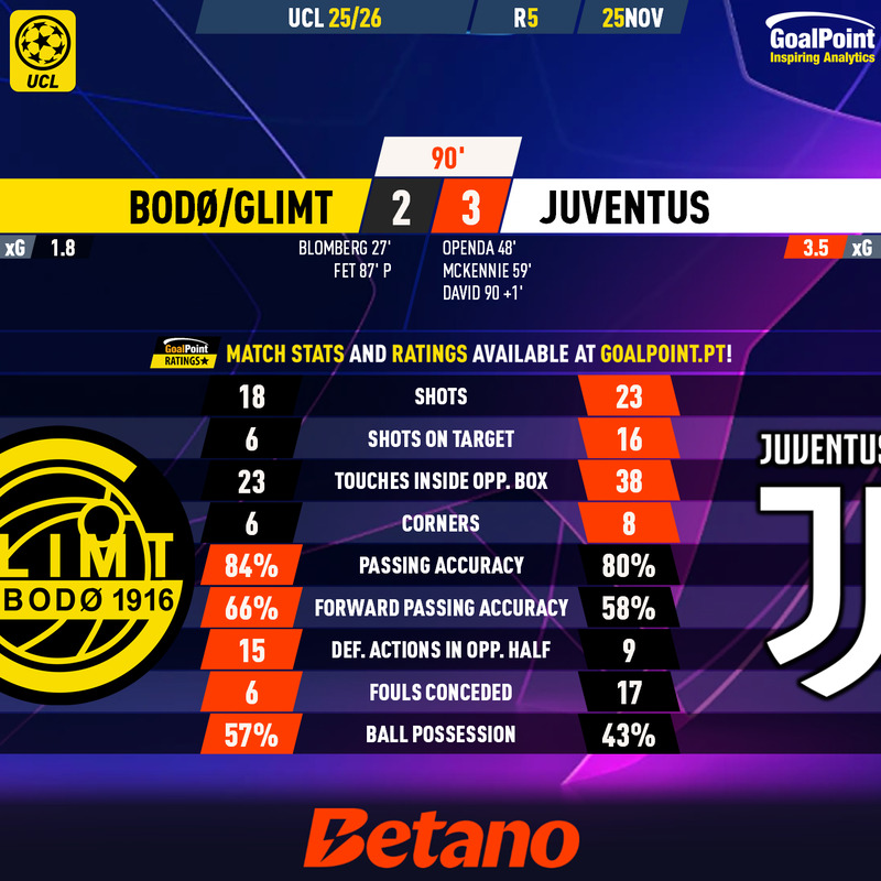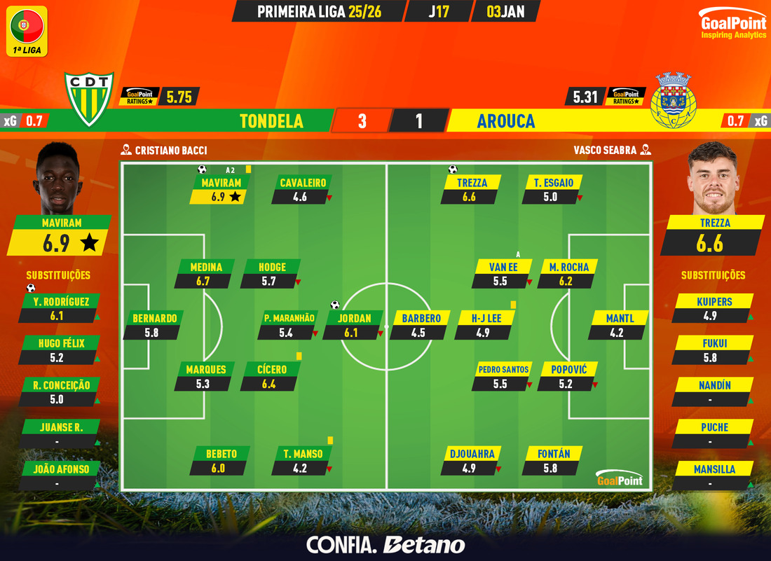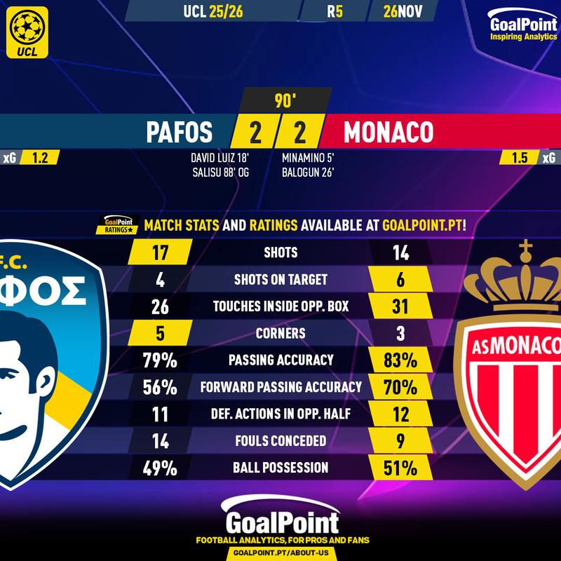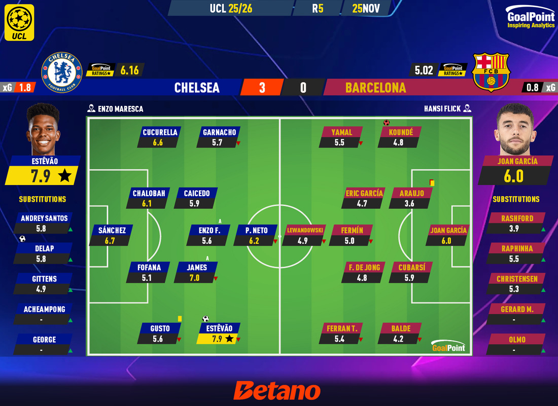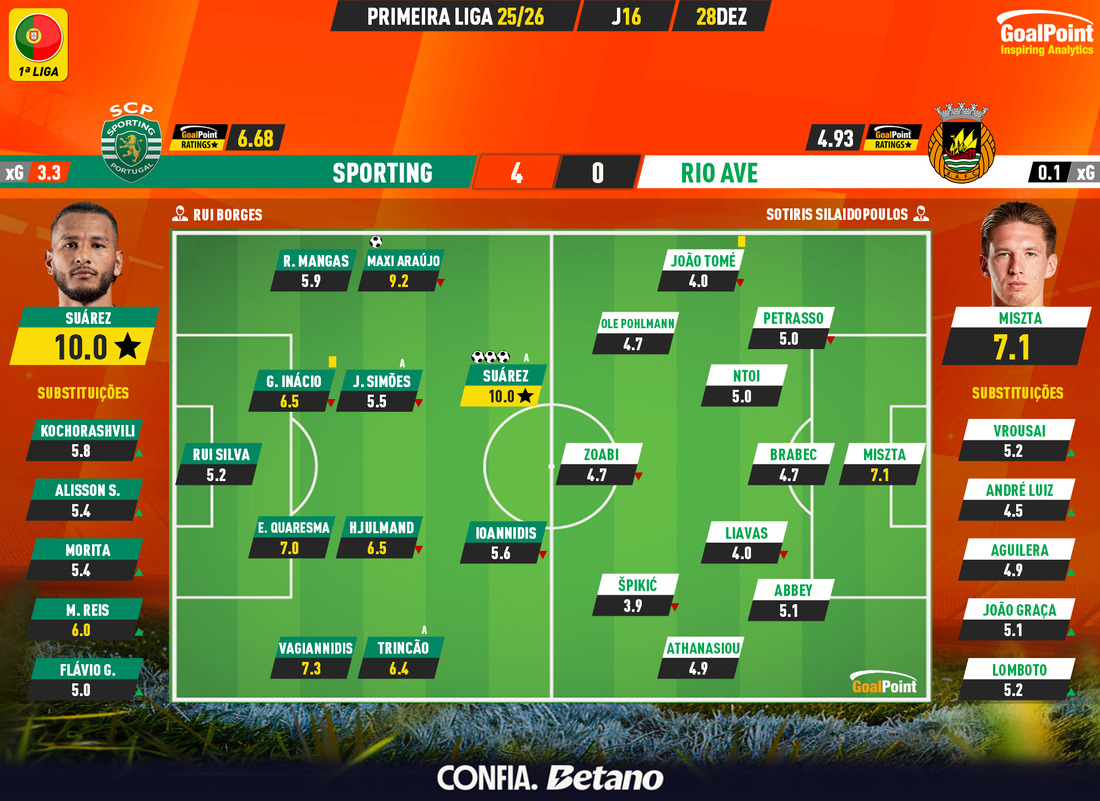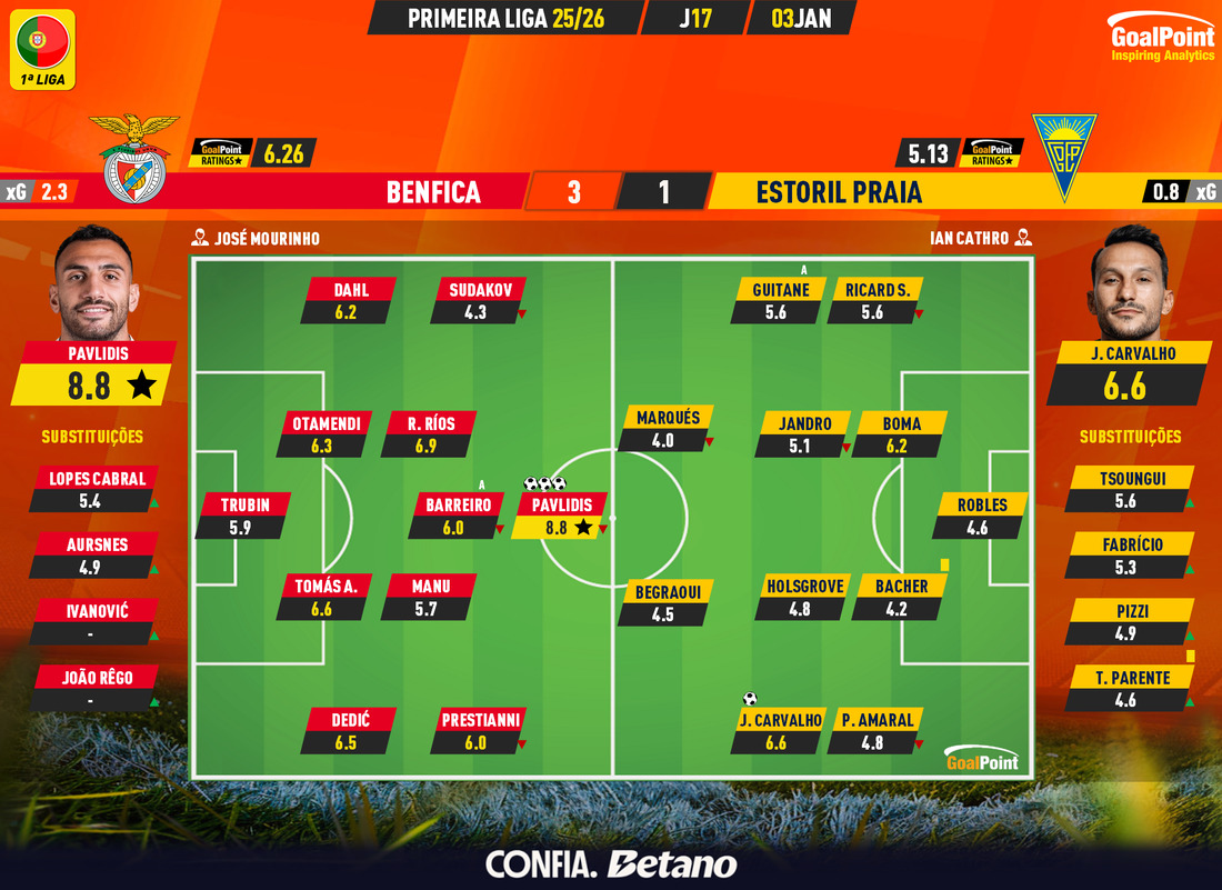 Nesta página podes consultar todos os jogos da época 2025/26, nas diversas competições acompanhadas em permanência pela GoalPoint. Em cada jogo encontrarás links para as estatísticas, ratings, MVP, mapas de passes e de Expected Goals logo… o melhor é guardar nos favoritos. Estás interessado(a) em aceder aos GoalPoint Ratings de modo regular e automatizado, para fins profissionais? Então confere esta informação e contacta-nos, obrigado!