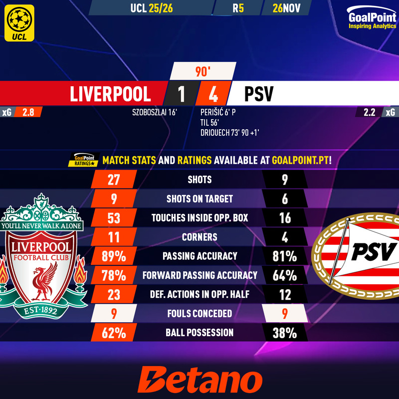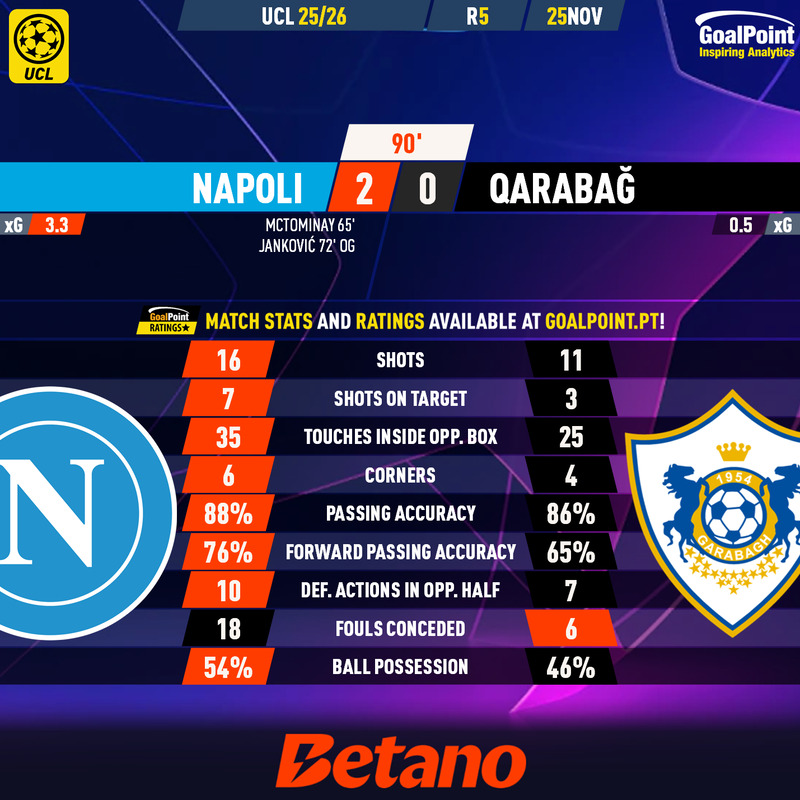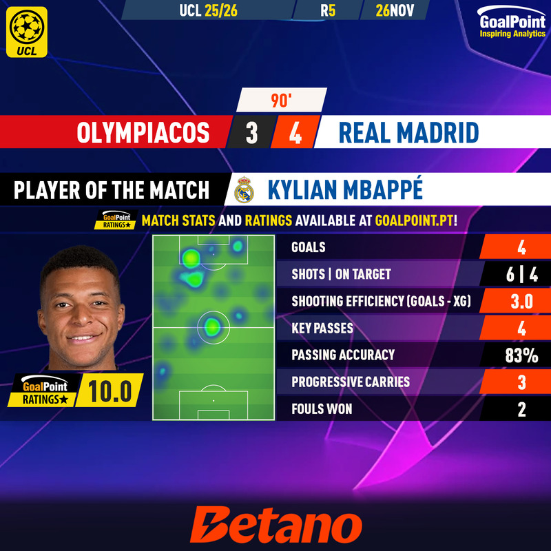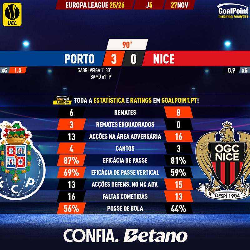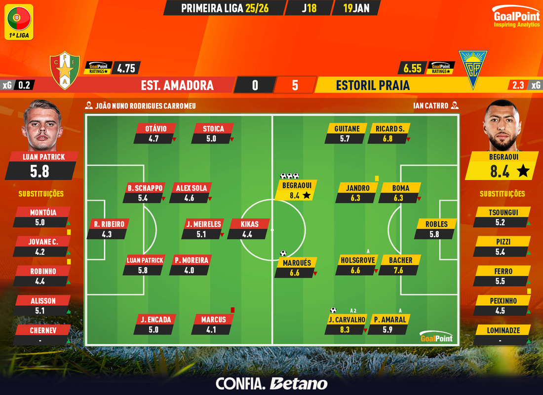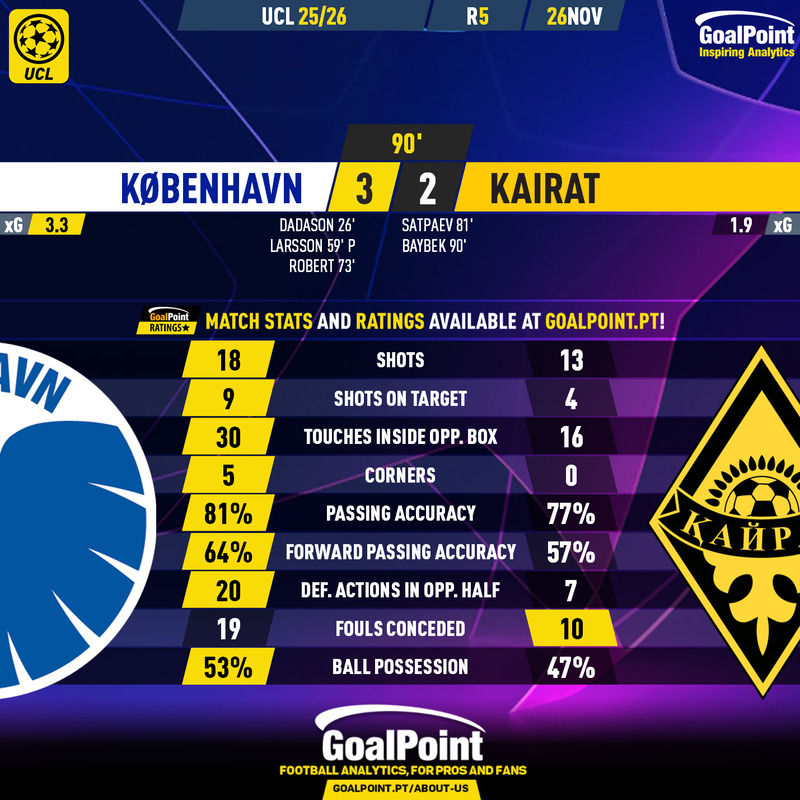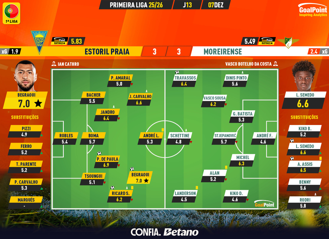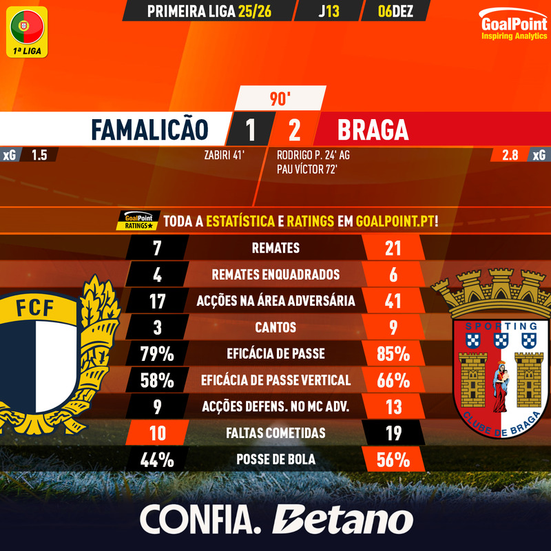 Nesta página podes consultar todos os jogos da época 2025/26, nas diversas competições acompanhadas em permanência pela GoalPoint. Em cada jogo encontrarás links para as estatísticas, ratings, MVP, mapas de passes e de Expected Goals logo… o melhor é guardar nos favoritos. Estás interessado(a) em aceder aos GoalPoint Ratings de modo regular e automatizado, para fins profissionais? Então confere esta informação e contacta-nos, obrigado!